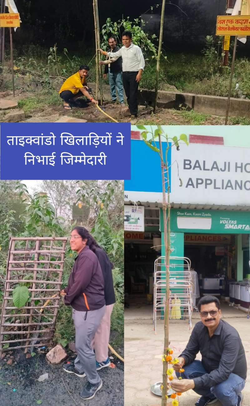 कदंब वृक्षों की प्यास बुझाने भीषण गर्मी में रात 10 बजे तक चला श्रमदान- ताइक्वांडो खिलाड़ियों ने निभाई जिम्मेदारी