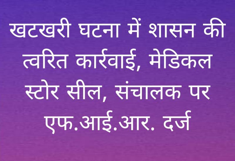 खटखरी घटना में शासन की त्वरित कार्रवाई, मेडिकल स्टोर सील, संचालक पर एफ.आई.आर. दर्ज