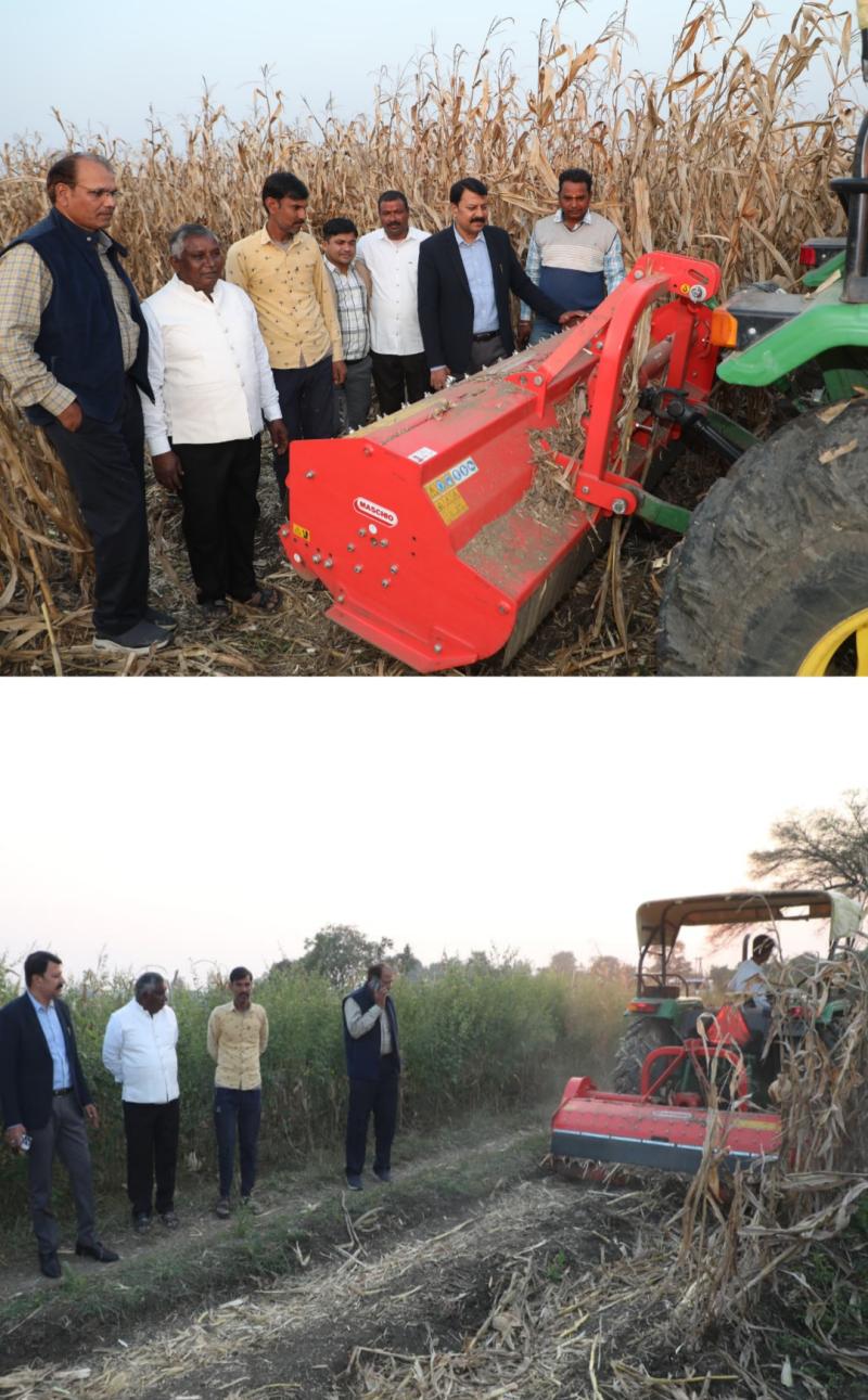 छिंदवाड़ा जिले के चौरई विकासखंड के ग्राम हथिनी के किसान श्री दिलीप सिंह चौहान के यहां उन्नत कृषि यंत्र मल्चर का प्रदर्शन उपसंचालक कृषि छिंदवाड़ा कृषि वैज्ञानिकों के टीम के साथ निरीक्षण किया यह देखा गया कि छिंदवाड़ा जिले में जहां लगभग चार लाख हेक्टर में मक्का की फसल होती है वहां पर मल्चर मक्का की नरवाई प्रबंधन के लिए बहुत ही बेहतर कृषि यंत्र है मल्चर से मक्का की नरवाई को टुकड़े-टुकड़े में करके मिट्टी में मिला दिया जाता है जिससे वह खाद के रूप में मिट्टी की उर्वरा शक्ति बढ़ती है और साथ-साथ नरवाई में आग लगने की समस्या से निजात मिलता है पर्यावरण का नुकसान भी नहीं होता कृषि अभियांत्रिकी से 86000 अनुदान पर खरीदा है किसान ने मल्चर जिसमे कृषक अंश एक लाख नौ हज़ार रुपए किसान के लगेl इसकी विशेषता यह है कि यह कृषि यंत्र मल्चर 35 एचपी एवम 40 HP के ट्रेक्टर से चल जाता है जबकि सुपरसीडर/ हैपीसीडर के लिये 45 एचपी या उससे अधिक एचपी का ट्रेक्टर चाहिए होता है l प्रति घंटे ज़मीन के अनुसार एक से डेढ़ एकड़ ज़मीन की नरवाई का प्रबंधन हो जाता है एवं नरवाई जलाने की कोई समस्या नहीं रहती अतः जिले के समस्त किसान भाइयों से अपील की जाती है की इन उन्नत कृषि यंत्रों सुपर सीटर हैप्पी सीडर मल्चर आदि का उपयोग कर नवाई का प्रबंध करें एवं अपने मिट्टी की उर्वरा शक्ति को बढ़ाएं पर्यावरण को बचाएं। निरीक्षण के दौरान उपसंचालक कृषि श्री जितेंद्र कुमार सिंह एसडीओ श्री नीलकंठ पटवारी कृषि वैज्ञानिक डॉ संत कुमार शर्मा वरिष्ठ कृषि विकास अधिकारी श्री उमेश पाटिल सहित किसान उपस्थित रहे ।