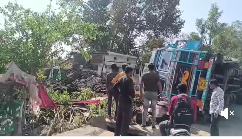 मंडला- देर रात्रि खपरैल वाले मकान पर पलटा कंटेनर, जबलपुर रायपुर राष्ट्रीय राजमार्ग 30 किनारे बने मकान पर पलटा कंटेनर, बाल बाल बचे मकान में रहवासी, चालक परिचालक को आई मामूली चोटें, मंडला जिले के बीजाडांडी गाँव की घटना।