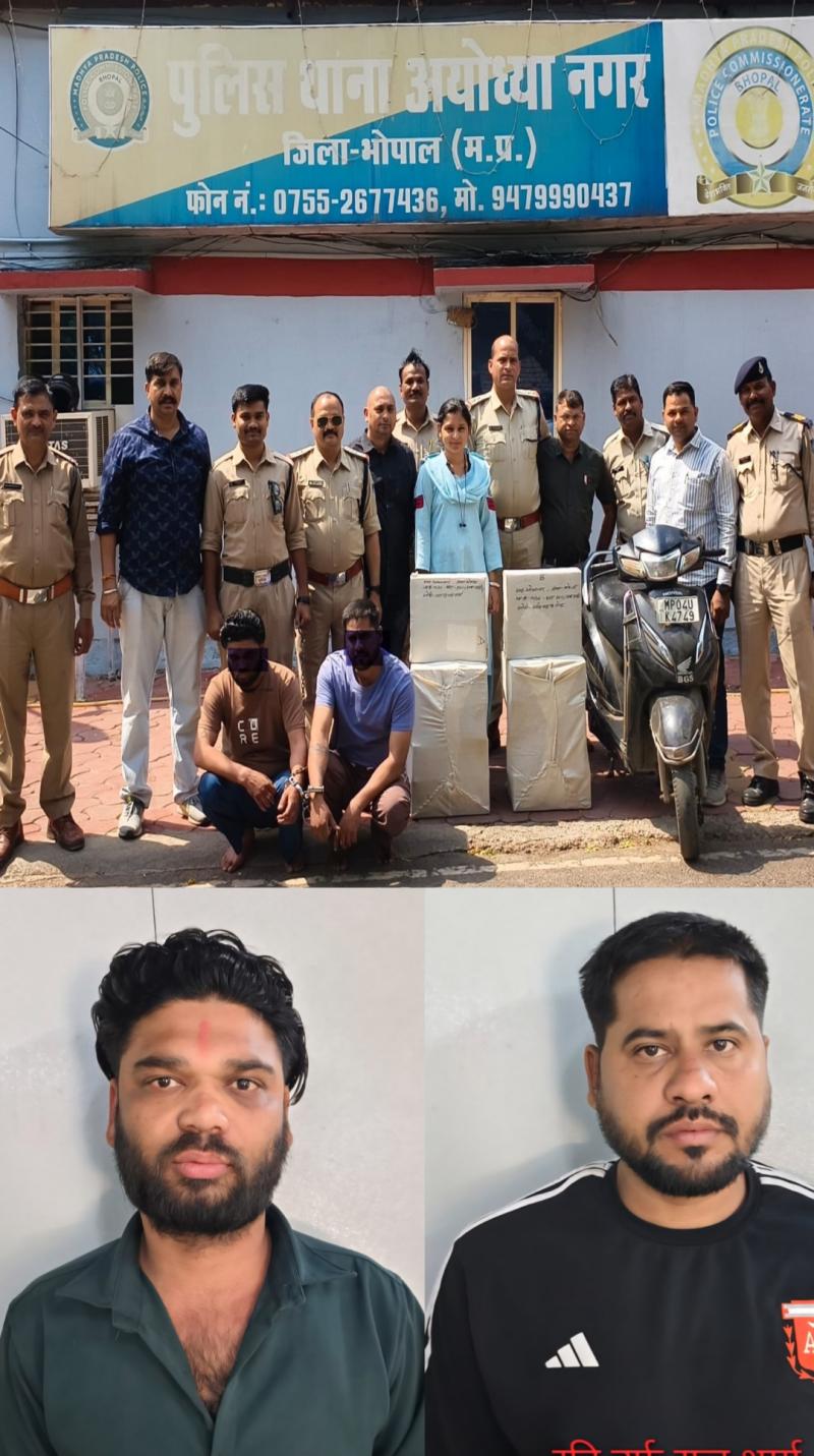 भोपाल l थाना अयोध्यानगर पुलिस ने 02 शराब तस्करो को 10 पेटी अग्रेजी शराब के साथ किया गिरफ्तार, रायसेन, विदिशा जिले से लाकर कर रहे थे भोपाल में शराब तस्करी।