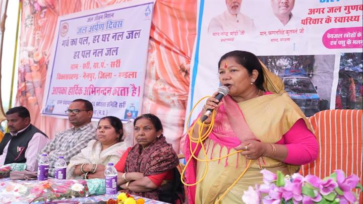 इस अवसर पर लोक स्वास्थ्य यांत्रिकी विभाग, मध्यप्रदेश शासन की मंत्री श्रीमती संपतिया उईके की गरिमामयी उपस्थिति ने कार्यक्रम को विशेष महत्व प्रदान किया। कार्यक्रम के दौरान क्रियाशील घरेलू नल कनेक्शन की विधिवत पूजा-अर्चना कर माल्यार्पण किया गया, जिससे “हर घर जल” संकल्प को नई ऊर्जा मिली। मंत्री श्रीमती उईके ने उपस्थित ग्रामीणजनों को संबोधित करते हुए कहा कि जल जीवन मिशन सरकार की प्राथमिक योजनाओं में शामिल है, जिसका लक्ष्य हर ग्रामीण परिवार तक शुद्ध पेयजल पहुँचाना है। उन्होंने जल के संरक्षण, विवेकपूर्ण उपयोग और नल जल योजनाओं के रखरखाव एवं संचालन में समुदाय की भागीदारी को अत्यंत आवश्यक बताया।