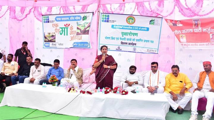 सतना l नगरीय विकास एवं आवास राज्यमंत्री श्रीमती प्रतिमा बागरी रविवार को ग्राम पंचायत नैना में एम.पी. बिरला प्रबंधन द्वारा आयोजित एक पेड़ मां के नाम अभियान कार्यक्रम में शामिल हुई। जन्म दिवस के अवसर पर उन्होंने वृक्षारोपण कर प्रकृति संरक्षण का संदेश दिया। साथ ही पोषण किट वितरण एवं मेधावी छात्र सम्मान समारोह कार्यक्रम में सहभागिता करते हुए ज़रूरतमंदों को पोषण किट वितरित किया तथा प्रतिभावान विद्यार्थियों को प्रशस्ति पत्र प्रदान कर शुभकामनाएं दी। राज्यमंत्री ने कहा कि यह आयोजन पर्यावरण संरक्षण, पोषण जागरूकता एवं शिक्षा को प्रोत्साहन सहित तीनों ही क्षेत्रों में एक प्रेरणादायक पहल है। मेरे जन्मदिवस के अवसर पर समाज व प्रकृति के प्रति अपने उत्तरदायित्व को निभाने का यह अवसर मिलना मेरे लिए अत्यंत हर्ष और गर्व का विषय रहा।