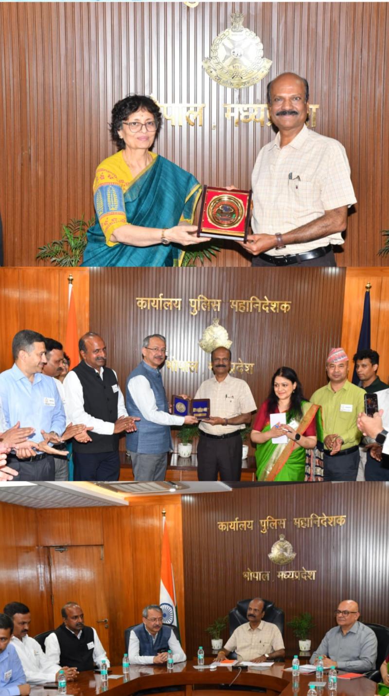 भोपाल । भारत सरकार के रक्षा मंत्रालय के अधीन संचालित नेशनल डिफेंस कॉलेज (NDC), नई दिल्ली के नेशनल सिक्योरिटी एंड स्ट्रैटेजिक स्टडीज़ कोर्स के अंतर्गत अध्ययन भ्रमण पर आए एक उच्चस्तरीय 16 सदस्यीय प्रतिनिधिमंडल ने आज पुलिस मुख्यालय, भोपाल में पुलिस महानिदेशक श्री कैलाश मकवाणा से भेंट कर राष्ट्रीय एवं आंतरिक सुरक्षा से जुड़े विभिन्न विषयों पर विस्तृत संवाद किया। यह प्रतिनिधिमंडल नरोन्हा प्रशासन अकादमी में अपने अध्ययन कार्यक्रम के तहत मध्यप्रदेश के दौरे पर है।