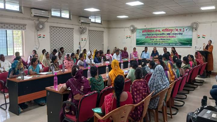 नरसिंहपुर l राष्ट्रीय प्राकृतिक खेती मिशन योजना अंतर्गत 50 कृषि सखियों के लिए 5 दिवसीय प्रशिक्षण कार्यक्रम का शुभारंभ कृषि विज्ञान केन्द्र एवं परियोजना संचालक आत्मा के समन्वयक से वरिष्ठ वैज्ञानिक एवं प्रमुख डॉ. विशाल मेश्राम के मार्गदर्शन में हुआ। यह प्रशिक्षण कार्यक्रम 19 सितम्बर तक आयोजित किया जाएगा।