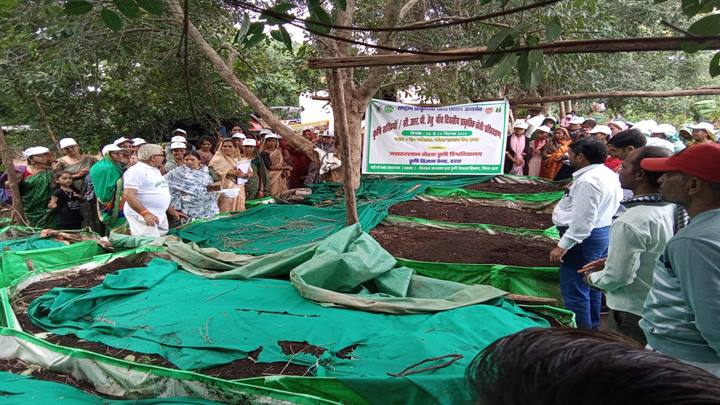 हरदा / कृषि विज्ञान केंद्र हरदा द्वारा राष्ट्रीय प्राकृतिक खेती मिशन अन्तर्गत 25 से 29 सितंबर तक पांच दिवसीय कृषि सखी प्रशिक्षण आयोजित किया जा रहा है। प्रशिक्षण अंतर्गत चतुर्थ दिवस रविवार को कृषि विज्ञान केन्द्र के वैज्ञानिक डॉ. आर. सी. जाटव ने बीजामृत, जीवामृत, घनजीवामृत के बारे मैं विस्तार से प्रयोग कर समझाया। प्रशिक्षण में पादप विज्ञान के वैज्ञानिक डॉ. ओमप्रकाश भारती ने कृषि सखियों को प्राकृतिक खेती मे रोग तथा कीट प्रबंधन हेतु नीम अस्त्र, अग्नि अस्त्र, दष्परिणी अर्क, ब्रह्मास्त्र आदि का प्रयोग के संबंध में जानकारी दी। केंद्र की वैज्ञानिक सुश्री जागृति बोरकर ने प्रगतिशील किसान श्री जय नारायण राय ग्राम नयापुरा के जैविक प्रक्षेत्र का भ्रमण कराया। प्रशिक्षण में केंद्र के वरिष्ठ तकनीकी अधिकारी डॉ. मुकेश कुमार बंकोलिया, सुश्री पुष्पा झारिया एवं श्री प्रमोद प्रसाद परवार की भी तकनीकी जानकारी देने में महत्वपूर्ण भूमिका निभा रही।