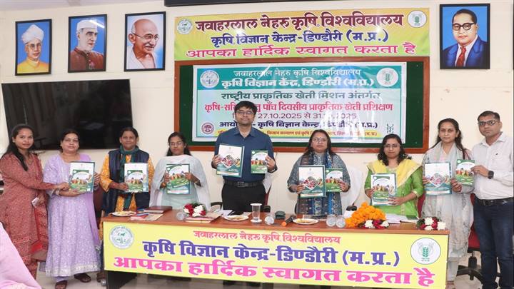 डिंडौरी l कृषि विज्ञान केंद्र डिंडोरी के स्वामी विवेकानंद सभागार में राष्ट्रीय प्राकृतिक खेती मिशन के अंतर्गत प्राकृतिक खेती पर कृषि सखियों का पांच दिवसीय प्रशिक्षण कार्यक्रम 27 से 31 अक्टूबर 2025 का समापन शुक्रवार को हुआ। कार्यक्रम में मुख्य अतिथि के रूप में कलेक्टर श्रीमती अंजू पवन भदौरिया तथा विशेष अतिथि के रूप में श्री दिव्यांशु चौधरी मुख्य कार्यपालन अधिकारी जिला पंचायत डिंडोरी उपस्थित रहे। दोनों अतिथियों ने अपने प्रेरणादायी उद्बोधन से कृषि सखियों का उत्साहवर्धन किया।