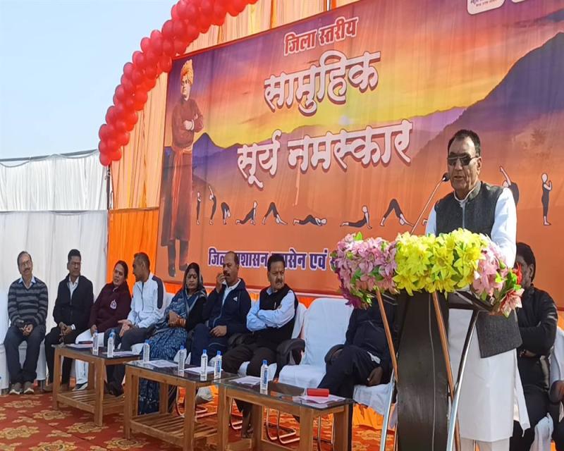 रायसेन l स्वामी विवेकानंद जी की जयंती ‘‘युवा दिवस‘‘ के अवसर पर जिले के सभी स्कूल-कॉलेजों, आश्रम-शालाओं सहित सभी शैक्षणिक संस्थानों में सामूहिक सूर्यनमस्कार कार्यक्रम आयोजित किए गए। रायसेन स्थित खेल स्टेडियम में आयोजित जिला स्तरीय सामूहिक सूर्यनमस्कार कार्यक्रम का शुभारंभ मछुआ कल्याण एवं मत्स्य विकास विभाग के राज्यमंत्री (स्वतंत्र प्रभार) तथा जिले के प्रभारी मंत्री श्री नारायण सिंह पंवार तथा सांची विधायक डॉ प्रभुराम चौधरी द्वारा स्वामी विवेकानंदजी के चित्र पर माल्यार्पण कर एवं दीप प्रज्जवलन कर शुभारंभ किया गया। इसके उपरांत स्वामी विवेकांनदजी की वाणी एवं मुख्यमंत्री डॉ मोहन यादव के संदेश का प्रसारण सुना गया। खेल स्टेडियम में आकाशवाणी से प्रसारित कार्यक्रम के अनुरूप प्रभारी मंत्री श्री पंवार, सांची विधायक डॉ चौधरी, जिला पंचायत अध्यक्ष श्री यशवंत मीणा, पूर्व कैबीनेट मंत्री श्री रामपाल सिंह छात्र-छात्राओं, जनप्रतिनिधियों, अधिकारियों और नागरिकों ने एक साथ सामूहिक सूर्यनमस्कार किया और अनुलोम-विलोम, भ्रामरी, प्राणायाम आदि योगासन किए गए। कार्यक्रम में प्रभारी मंत्री श्री पंवार ने कहा कि स्वामी विवेकानंदजी का जन्मदिवस युवा दिवस के रूप में मनाया जाता है। स्वामी विवेकानंद जी के विचार युवाओं में नई ऊर्जा का संचार करते हैं तथा सभी को स्वामी विवेकानंदजी के आदर्शों और विचारों से प्रेरित होकर अपने जीवन में सकारात्मक परिवर्तन लाने का संकल्प लेना चाहिए। उन्होंने कहा कि योग हमारी भारतीय परम्परा का हिस्सा है। योग से सभी का बौद्धिक, मानसिक और शारीरिक विकास होता है और क्षमताओं में वृद्धि होती है। प्रभारी मंत्री श्री पंवार ने छात्र-छात्राओं को संबोधित करते हुए कहा कि स्वामी विवेकानंदजी का “उठो-जागो और तब तक मत रूको जब तक लक्ष्य प्राप्त न हो“ का संदेश परमात्मा द्वारा व्यक्ति को प्रदान किए गए असीम ऊर्जा के भण्डार का अनुभव कराकर अपने स्वप्न और लक्ष्यों को प्राप्त करने के लिए पूरी क्षमता से प्रयास करने के लिए प्रेरित करता है। स्वामी विवेकानंद के विचार न केवल युवाओं को सशक्त बनाते हैं, बल्कि हमें समाज और देश के प्रति हमारी जिम्मेदारियों की भी अनुभूति कराते हैं। सभी स्वामी विवेकानंद के सपनों को पूरा करने के लिए एकजुट हों और राष्ट्र को शक्तिशाली एवं समृद्ध बनाने में योगदान दें। कार्यक्रम में सांची विधायक डॉ चौधरी ने सभी को राष्ट्रीय युवा दिवस की शुभकामनाएं देते हुए कहा कि सभी को जीवन में योग अपनाना चाहिए। योगाभ्यास से हमारा शरीर तो स्वस्थ्य होता ही है, मानसिक रूप से भी सुदृढ़ होते हैं। एकाग्रता और सीखने की क्षमता में भी वृद्धि होगी। विद्यार्थी नियमित सूर्य नमस्कार 