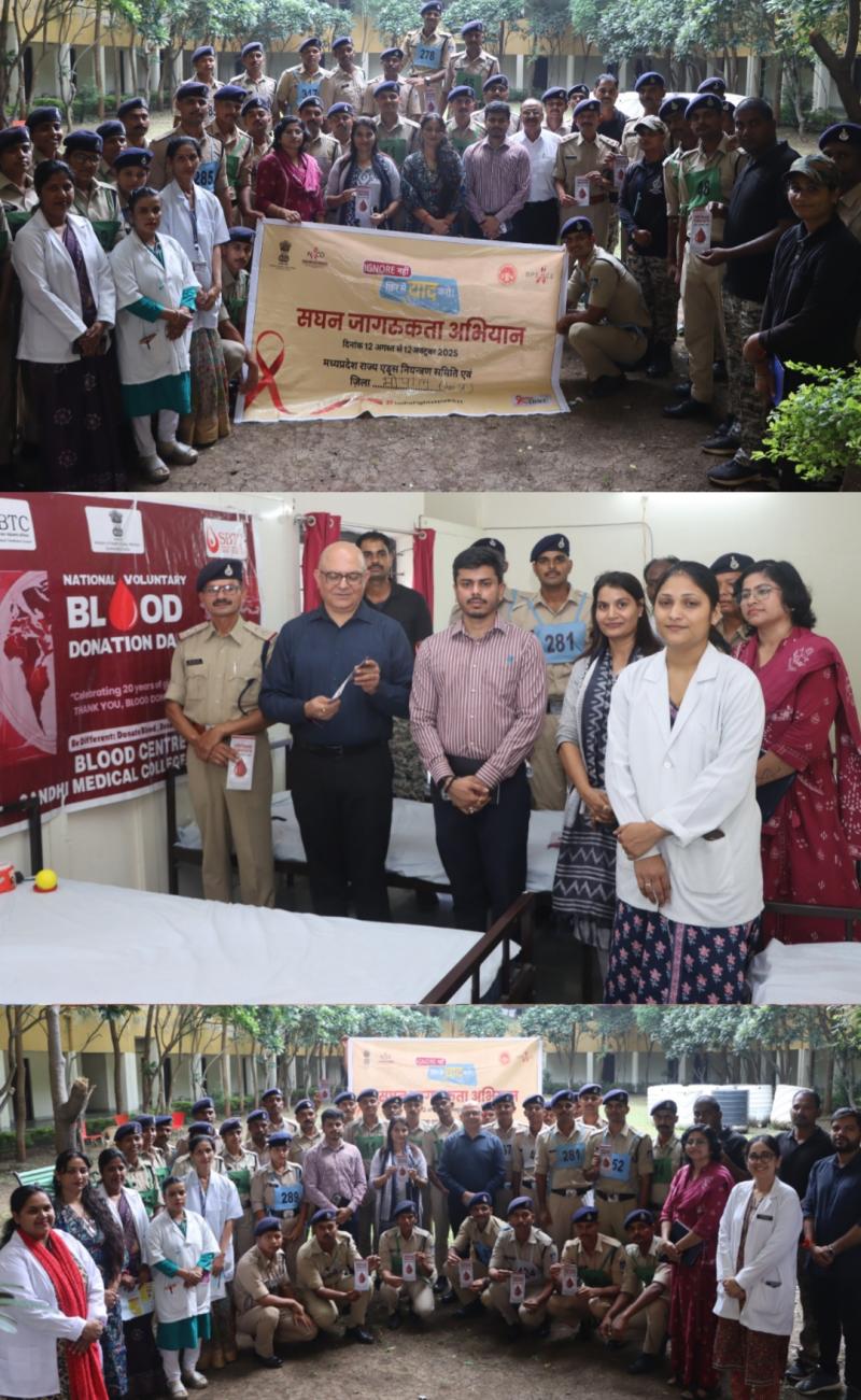 भोपाल । प्रधानमंत्री श्री नरेन्द्र मोदी के जन्मदिवस को "सेवा पखवाड़ा" के रूप में मनाए जाने के उपलक्ष्य में आज पुलिस प्रशिक्षण शाला भौंरी, भोपाल में एक रक्तदान शिविर एवं महिला स्वास्थ्य जागरूकता कार्यशाला का सफलतापूर्वक आयोजन किया गया। यह कार्यक्रम पुलिस मुख्यालय भोपाल के निर्देशन एवं अतिरिक्त पुलिस महानिदेशक (प्रशिक्षण) श्री राजाबाबू सिंह के मार्गदर्शन में आयोजित किया गया।