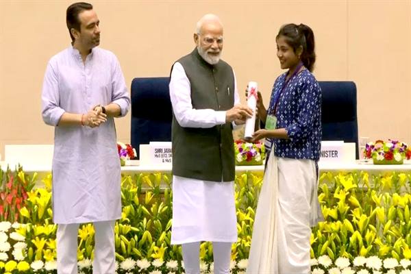 प्रधानमंत्री श्री मोदी ने बैतूल की आईटीआई प्रशिक्षार्थी कु. तावड़े को किया सम्मानित
