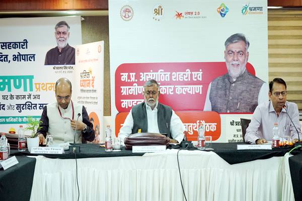 भोपाल l मध्यप्रदेश में असंगठित क्षेत्र में कार्यरत श्रमिकों का "मुख्यमंत्री श्रम श्री" स्वास्थ्य अभियान के अंतर्गत स्वास्थ्य परीक्षण कर डिजिटल हेल्थ रिकार्ड रखा जायेगा, विशेष रूप से श्रमिकों के 25 वर्ष से कम उम्र के बच्चों तथा 50 वर्ष से अधिक उम्र के श्रमिकों का स्वास्थ्य परीक्षण प्राथमिकता से किया जायेगा। इस कार्य में पंचायतों में संचालित आयुष भवनों का भी सहयोग लिया जायेगा। यह निर्णय प्रदेश के श्रम मंत्री श्री प्रहलाद सिंह पटेल की अध्यक्षता में 23 फरवरी को हुई म.प्र. असंगठित शहरी एवं ग्रामीण कर्मकार कल्याण मंडल की चतुर्थ बैठक में लिये गये। इस अवसर पर मंडल के आगामी वित्तीय वर्ष 2026-27 के बजट प्राक्कलन को स्वीकृति प्रदान की गई। श्रम मंत्री श्री पटेल द्वारा प्रथम श्रमणा सहकारी समिति, भोपाल के अध्यक्ष श्री विकास संसारे तथा समिति के सदस्यों का टी-शर्ट, कैप तथा प्रमाण-पत्र प्रदान कर स्वागत किया गया। बैठक में श्रम सचिव श्री रघुराज राजेन्द्रन, मंडल के सचिव, श्री संजय कुमार, सहायक सचिव, श्रीमती दीपा तुली सहित संचालक मंडल के सदस्य उपस्थित रहे।