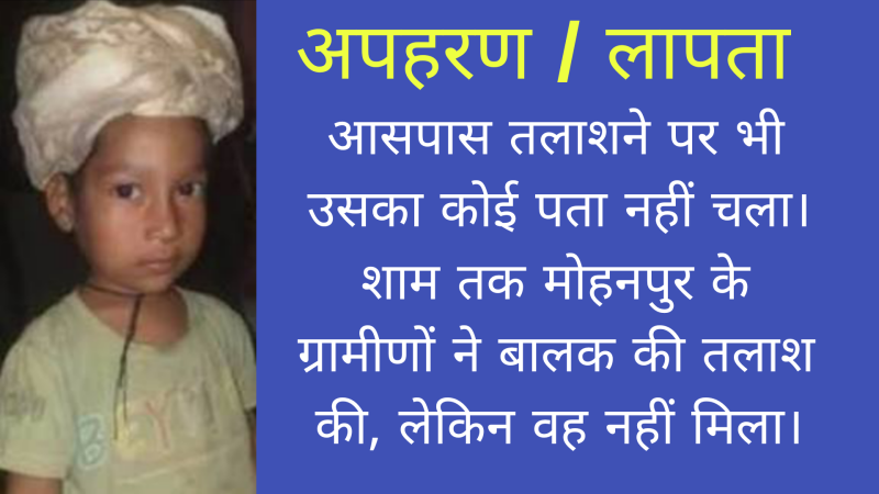 अपहरण / लापता : तीन वर्षीय रीतेश का अब तक कोई सुराग नहीं मिला
