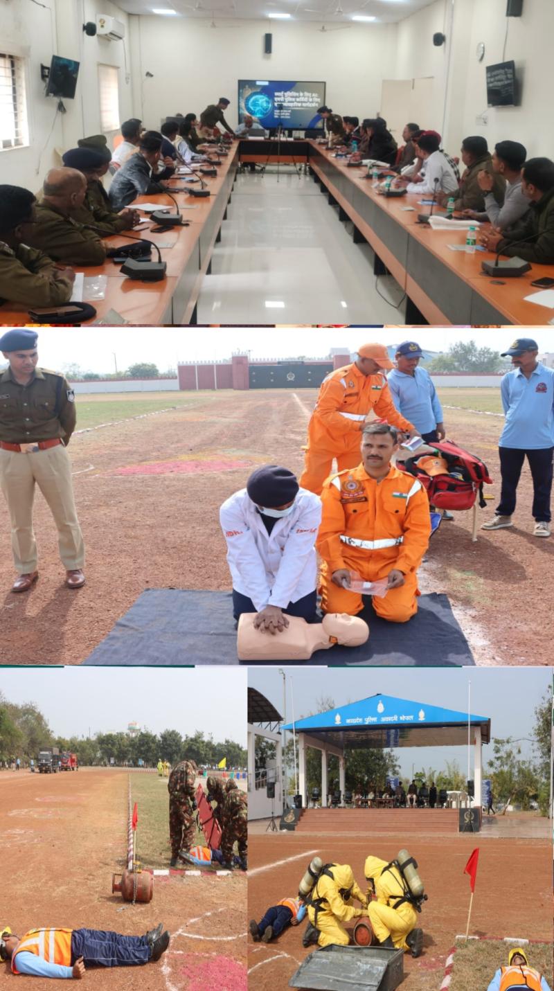 तकनीकी दक्षता के साथ-साथ पुलिस बल को शारीरिक और मानसिक रूप से आपदाओं के लिए तैयार करने हेतु पुलिस अकादमी में 'नेशनल डिजास्टर रिस्पांस फोर्स' (NDRF) की टीम ने प्रशिक्षणरत उप पुलिस अधीक्षकों, नव-आरक्षकों और स्टाफ को आपदा प्रबंधन के गुर सिखाए। एनडीआरएफ की विशेषज्ञ टीम ने जवानों को सीपीआर (CPR), एयरवे ऑब्स्ट्रक्शन क्लियर करना, रक्तस्राव रोकने और घायलों के सुरक्षित परिवहन (First Aid) का व्यावहारिक अभ्यास कराया।