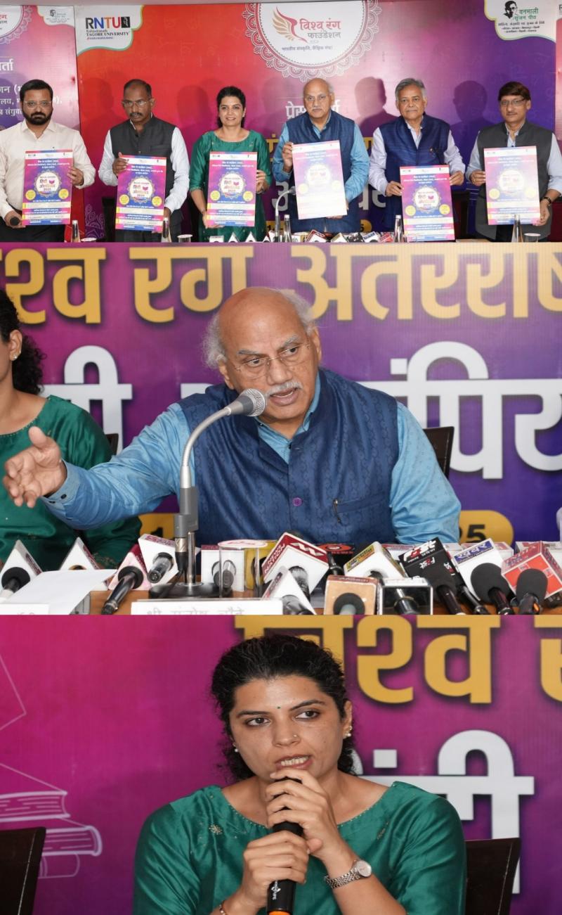 भोपाल। हिंदी भाषा के वैश्विक प्रचार – प्रसार और नई पीढ़ी को हिंदी से जोड़ने के उद्देश्य से विश्व रंग फाउंडेशन (भारत), रवीन्द्रनाथ टैगोर विश्वविद्यालय भोपाल एवं वनमाली सृजन पीठ द्वारा संयुक्त रूप से विश्व रंग अंतरराष्ट्रीय हिंदी ओलंपियाड 2025 का आयोजन किया जा रहा है। यह आयोजन 14 सितम्बर (हिंदी दिवस) से 30 सितम्बर (अंतरराष्ट्रीय अनुवाद दिवस) तक भारत सहित विश्व के 50 से अधिक देशों में आयोजित होगा। इसके संबंध में गुरुवार को पलाश रेसिडेंसी में प्रेस वार्ता का आयोजन किया गया। इस दौरान कार्यक्रम में विश्व रंग के निदेशक और रवीन्द्रनाथ टैगोर विश्वविद्यालय के कुलाधिपति संतोष चौबे, विश्व रंग की सह निदेशक और रवीन्द्रनाथ टैगोर विश्वविद्यालय की प्रो. चांसलर डॉ. अदिति चतुर्वेदी वत्स, वरिष्ठ शिक्षाविद् डॉ. अमिताभ सक्सेना, टैगोर अंतरराष्ट्रीय हिंदी केन्द्र के निदेशक डॉ. जवाहर कर्नावट और टैगोर अंतरराष्ट्रीय साहित्य एवं कला केंद्र के निदेशक श्री विनय उपाध्याय ने कार्यक्रम पर विस्तृत जानकारी साझा की। विश्वरंग हिंदी ओलंपियाड का औपचारिक उद्घाटन मध्य प्रदेश के माननीय मुख्यमंत्री श्री मोहन यादव द्वारा 15 सितंबर को वेबसाइट के उद्घाटन के साथ किया जाएगा।
