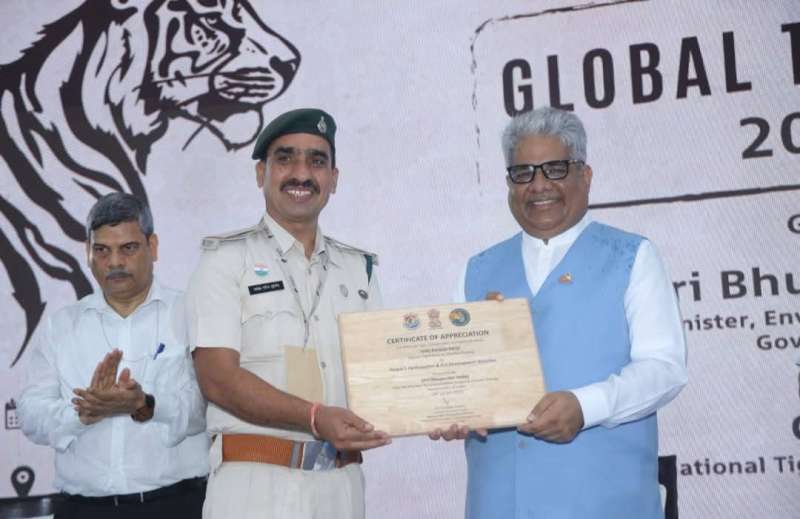 नई दिल्ली l केन्द्रीय वन एवं पर्यावरण मंत्री श्री भूपेन्द्र यादव ने अंतर्राष्ट्रीय बाघ दिवस के अवसर पर दिल्ली में आयोजित समारोह में उत्कृष्ट कार्य करने वाले मध्यप्रदेश टाइगर रिजर्व के वनकर्मियों को सम्मानित किया। इनमें सतपुड़ा टाइगर रिजर्व के फॉरेस्ट गार्ड श्री राजेश पटेल, कान्हा टाइगर रिजर्व के स्थायी कर्मी श्री सुखमान कुशरे एवं फॉरेस्ट गार्ड श्री बसंत लाल मरावी एवं पेंच टाइगर रिजर्व की फॉरेस्ट वॉचर श्रीमती झुन्नी बाई शामिल हैं।