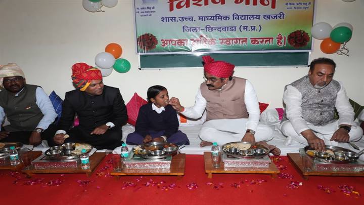 छिंदवाड़ा। खजरी गांव में दोपहर भोज स्कूली बच्चों के साथ मंत्री जी को करने का कार्यक्रम था l जब मंत्री जी भोज के लिए पहुंचे तो उनके साथ बहुत सारे नेता भी थे, मंत्री जी भोज के लिए बैठे हुए नेताजन भी बैठ गए l इस बात पर मंत्री राकेश सिंह नाराज हुए और उन्होंने आईना दिखाते हुए फटकार लगाई कि यह भोजन पहले बच्चों को मिलना चाहिए l यह भोजन बच्चों के लिए है ना कि नेताओं के लिए.. बाद में आयोजन होने अपनी भूल सुधरी l गणतंत्र दिवस के पावन अवसर पर छिन्दवाडा नगर के शासकीय उच्चतर माध्यमिक विद्यालय खजरी में पीएम पोषण योजना के अंतर्गत जिला स्तरीय विशेष भोज कार्यक्रम आयोजित किया गया। कार्यक्रम में प्रदेश के लोक निर्माण विभाग मंत्री एवं छिंदवाड़ा जिले के प्रभारी मंत्री श्री राकेश सिंह ने विद्यार्थियों के साथ सुस्वादु पौष्टिक भोजन खीर-पूरी का स्वाद चखा । उन्होंने प्रारंभ में दीप प्रज्जवलित कर और मां सरस्वती की प्रतिमा पर माल्यार्पण के बाद कार्यक्रम में एक छात्रा को अपने हाथों से खीर - पूरी खिलाकर विशेष भोज कार्यक्रम की शुरूआत की । उन्होंने कन्या पूजन भी किया ।