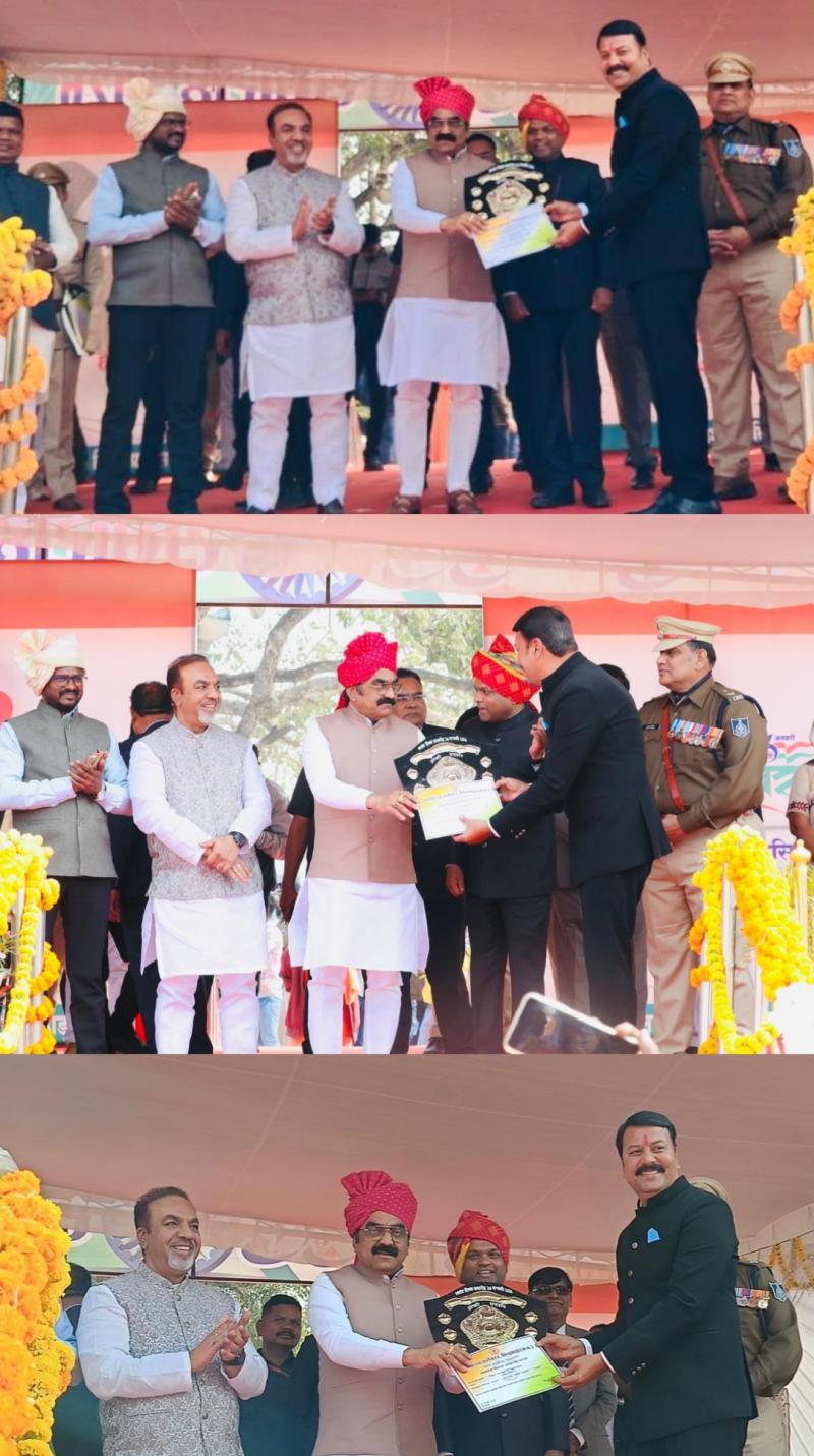 छिंदवाड़ा ज़िले में कृषि विभाग की प्राकृतिक खेती की थीम पर बनी झाँकी को प्रथम पुरस्कार देते ज़िले के प्रभारी मंत्री मध्य प्रदेश शासन के पीडब्ल्यूडी मंत्री माननीय श्री राकेश सिंह , उपसंचालक कृषि जितेन्द्र कुमार सिंह को शील्ड एवम प्रमाण पत्र प्रदान किया गया साथ में कलेक्टर छिंदवाड़ा हरेन्द्र नारायन भी मौजूद रहे।