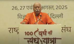 राष्ट्रीय स्वयंसेवक संघ के 100 वर्ष पूरे होने के उपलक्ष्य में आयोजित कार्यक्रम में, संगठन के सरसंघचालक मोहन भागवत ने कहा कि आरएसएस अपनी यात्रा के 100 वर्ष पूरे कर रहा है। आरएसएस का सार हमारी प्रार्थना की अंतिम पंक्ति में निहित है, जिसे हम प्रतिदिन दोहराते हैं, 'भारत माता की जय'। यह हमारा देश है और हमें इसकी प्रशंसा करनी चाहिए और इसे दुनिया में नंबर एक बनाने की दिशा में काम करना चाहिए। उन्होंने कहा कि दुनिया करीब आ गई है, और इसलिए हमें वैश्विक स्तर पर सोचना होगा। भागवत ने स्वामी विवेकानंद का जिक्र करते हुए कहा कि एक बार उन्होंने कहा था, "प्रत्येक राष्ट्र का एक मिशन होता है जिसे पूरा करना होता है"... भारत का भी अपना योगदान है। यदि किसी देश को नेता बनना है, तो उसे अपने लिए ऐसा नहीं करना चाहिए, बल्कि उसके नेतृत्व को विश्व व्यवस्था में एक आवश्यक नई गति लानी चाहिए। उन्होंने कहा कि आरएसएस की स्थापना का उद्देश्य भारत के लिए है, इसका कार्य भारत के लिए है, और इसका महत्व भारत के 'विश्वगुरु' बनने में निहित है। विश्व में भारत के योगदान का समय आ गया है।