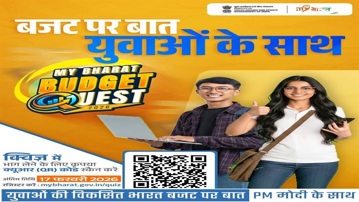 सागर l मेरा युवा भारत (माय भारत) सागर के उपनिदेशक रोहित यादव ने बताया कि युवाओं की सक्रिय भागीदारी सुनिश्चित करने एवं आम बजट के प्रति उनकी समझ को सुदृढ़ करने के उद्देश्य से युवा कार्यक्रम एवं खेल मंत्रालय, भारत सरकार के अंतर्गत माय भारत पोर्टल पर ‘माय भारत बजट क्वेस्ट 2026’ का शुभारंभ 3 फरवरी 2026 से किया गया है। इस प्रतियोगिता के अंतर्गत राष्ट्रीय स्तर पर ऑनलाइन क्विज़ आयोजित की जा रही है, जो आम बजट पर आधारित होगी। प्रतियोगिता में भाग लेने के लिए इच्छुक युवा 17 फरवरी 2026 तक माय भारत पोर्टल पर पंजीकरण कर सकते हैं। क्विज़ में बजट से संबंधित कुल 30 प्रश्न पूछे जाएंगे।