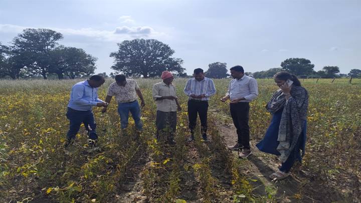 जलभराव एवं विभिन्न कीट व्याधि से ग्रसित सोयाबीन फसलों का किया निरीक्षण