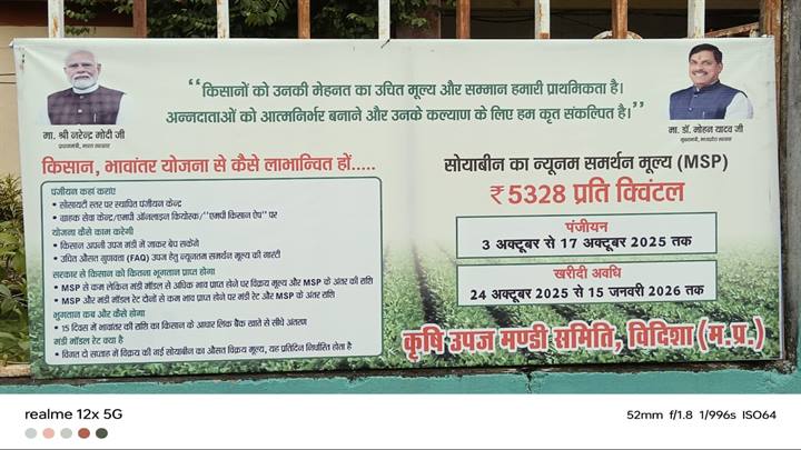 रायसेन l सोयाबीन की फसल लेने वाले किसानों के लिए भावांतर योजना के तहत पंजीयन कार्य तीन अक्टूबर से विदिशा जिले में भी शुरू हुआ पहले दिन ही 65 समितियों में 353 किसानों ने रजिस्ट्रेशन कराया है।