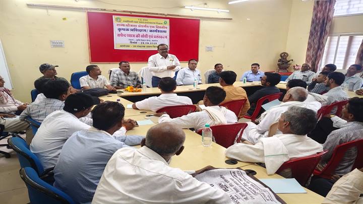 खरगोन । उद्यानिकी एवं खाद्य प्रसंस्करण विभाग खरगोन द्वारा 29 सितंबर को कृषि विज्ञान केन्द्र खरगोन पर सेमिनार/कार्यशाला का आयोजन किया गया। जिसमें सफेद प्याज की खेती और प्रसंस्करण तकनिकी पर जैन इरिगेशन जलगांव महाराष्ट के वैज्ञानिक एग्रोनामिस्ट बी.आर. सोलंकी, आर. एम. सूर्यवंशी, सी.एच. धनगर द्वारा जिले 150 कृषकों को सफेद प्याज उत्पादन तकनीकी एवं प्रसंस्करण के लिए अनुबंध खेती की तकनीकी जानकारी दी गई ।