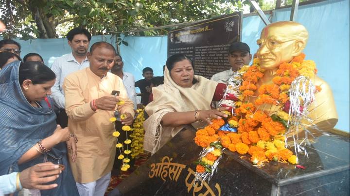 महात्मा गांधी की प्रतिमा पर मंत्री श्रीमती उइके ने किया माल्यार्पण