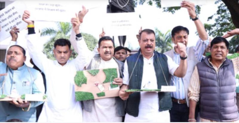 भोपाल l विधानसभा के शीतकालीन सत्र के दूसरे दिन कांग्रेस विधायक दल ने किसानों की समस्याओं को लेकर भाजपा सरकार के खिलाफ व्यापक और आक्रामक प्रदर्शन किया। नेता प्रतिपक्ष उमंग सिंघार के नेतृत्व में कांग्रेस विधायकों ने विधानसभा परिसर में चिड़िया चुग गई खेत की सांकेतिक झांकी के साथ मार्च निकाला, जिसके माध्यम से उन्होंने आरोप लगाया कि सरकार की विफलताओं ने किसानों की मेहनत और फसल दोनों को चौपट कर दिया है। नेता प्रतिपक्ष उमंग सिंघार ने कहा कि प्रदेश का किसान खाद से लेकर खरीदी के उचित मूल्य और प्राकृतिक आपदाओं के मुआवज़े तक हर स्तर पर परेशान है। उन्होंने कहा कि अन्नदाता बार-बार सरकारी दफ्तरों में चक्कर काट रहा है, लेकिन सत्ता पक्ष केवल भावांतर और योजनाओं के खोखले दावे दोहराता रहा। सिंघार ने आरोप लगाया कि सरकार किसानों के हितों की रक्षा नहीं कर पाई भाजपा सरकार रूपी चिड़िया किसानों के खेत पहले ही साफ कर चुकी है।