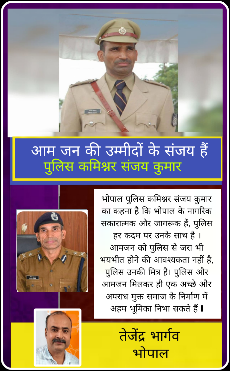 आज हम ऐसे ही एक ईमानदार और कर्तव्यनिष्ठ पुलिस अफसर की बात कर रहे हैं जिनके बारे में उनके विभाग के ही वरिष्ठ अफसर कहते हैं कि वह सिर्फ काम करने वाले ही नहीं बल्कि काम करके सकारात्मक परिणाम देने वाले अफसर हैं । जी हां हम बात कर रहे हैं भोपाल पुलिस कमिश्नर संजय कुमार की।