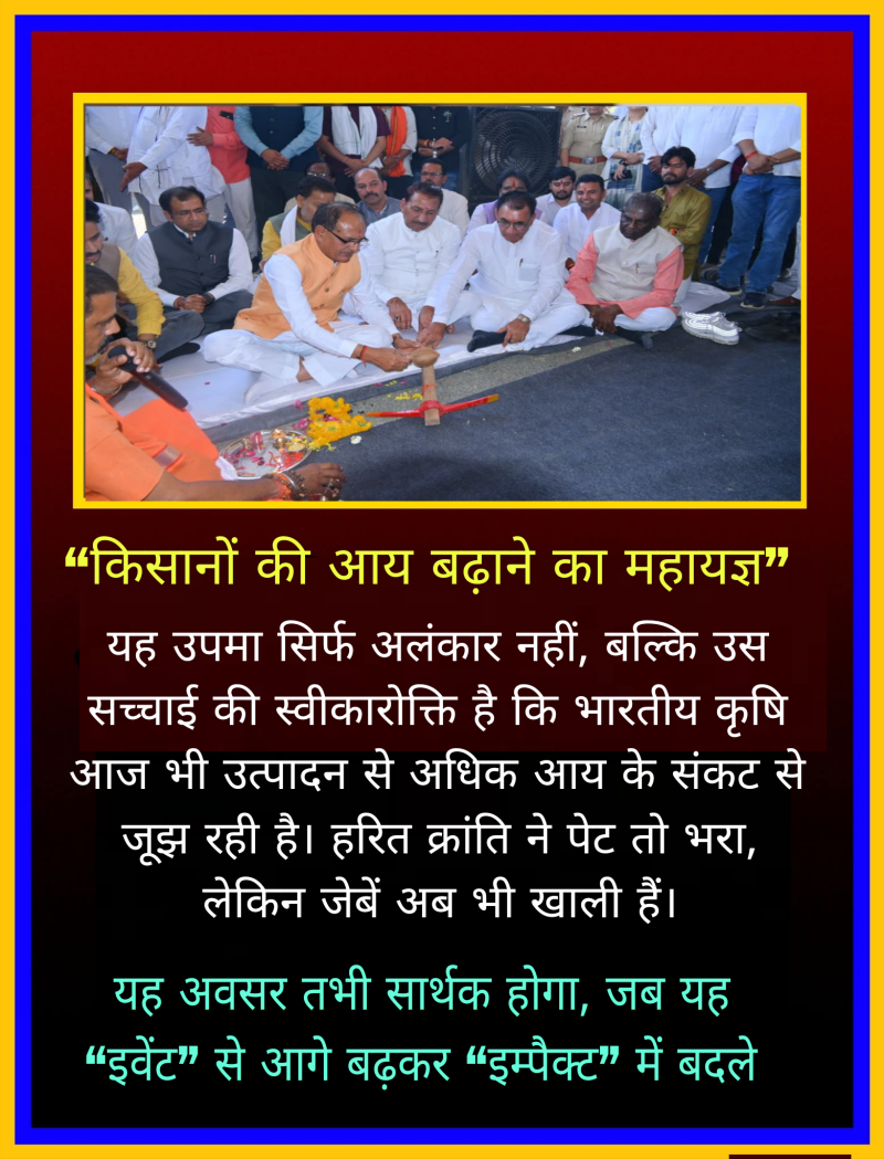 रायसेन का यह आयोजन एक अवसर है—सरकार के लिए अपनी नीतियों को जमीन पर परखने का और किसानों के लिए अपने भविष्य की नई संभावनाओं को समझने का। पर यह अवसर तभी सार्थक होगा, जब यह “इवेंट” से आगे बढ़कर “इम्पैक्ट” में बदले।