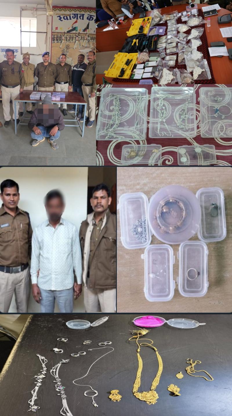 आज़ाद नगर ने पुलिस ने शादी समारोह में गए परिवार के घर हुई चोरी का 24 घंटे में खुलासा करते हुए एक आरोपी को गिरफ्तार कर उसके कब्जे से 8 लाख 37 हजार रुपये के सोने-चांदी के आभूषण बरामद किए हैं। इसी प्रकार संयोगितागंज पुलिस ने चिड़ियाघर पार्किंग से हुई सोने और डायमंड चोरी के मामले में त्वरित कार्यवाही करते हुए आरोपी को गिरफ्तार कर 10 लाख 75 हजार रुपये की संपूर्ण सामग्री जब्त की है।