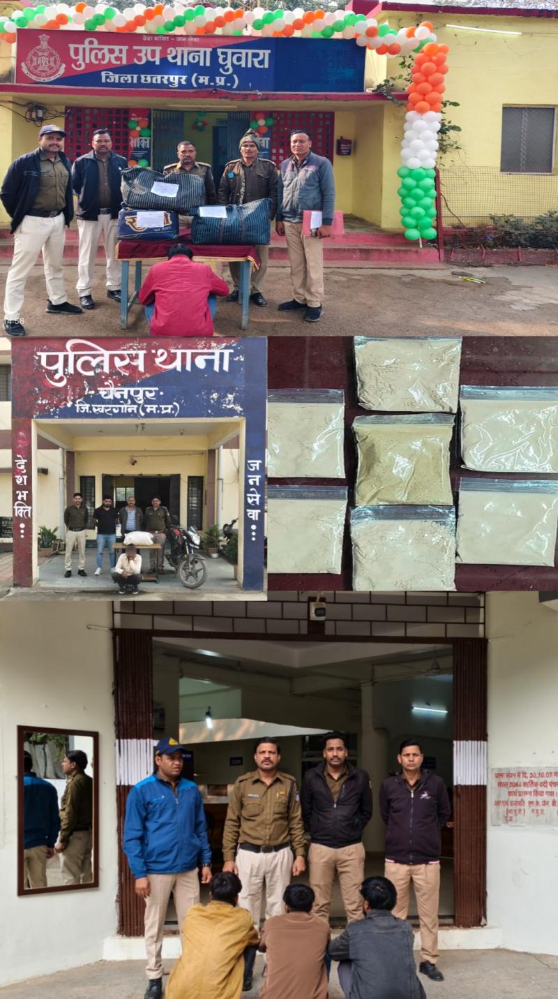 भोपाल l मध्यप्रदेश पुलिस द्वारा प्रदेशभर में अवैध मादक पदार्थों की तस्करी, भंडारण एवं विक्रय के विरुद्ध निरंतर प्रभावी कार्रवाई की जा रही है। इसी क्रम में विगत 3 दिनों के दौरान प्रदेश के विभिन्न जिलों में पुलिस ने सूचना तंत्र को सक्रिय रखते हुए त्वरित कार्रवाई करते हुए नशे के कारोबार से जुड़े आरोपियों को गिरफ्तार कर 24 लाख रुपए से अधिक मूल्य की मादक सामग्री जप्त की है।