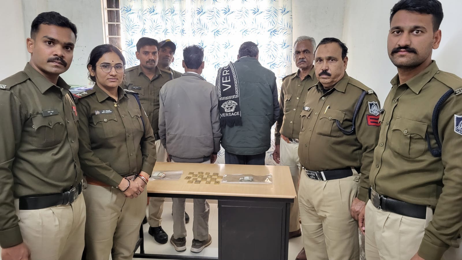 जिले के थाना देहात क्षेत्र में खेत में गड़ा सोना निकालने एवं पूजा-पाठ के नाम पर 70 हजार रूपए एवं नकली पीतल के बिस्कुट थमाकर ठगी करने की शिकायत पर पुलिस ने त्वरित कार्रवाई कर दो आरोपियों को गिरफ्तार किया है। आरोपियों के कब्जे से पुलिस ने 24हजार रूपएनगद एवं 16 नकली पीतल के बिस्कुट जब्त किए हैं।