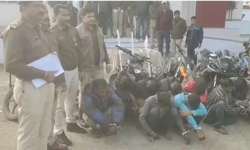 पेट्रोल पंप में डकैती की वारदात को अंजाम देने के पहले ही 10 बदमाश गिरफ्तार ,तलवार और पांच महंगी बाइक जब्त