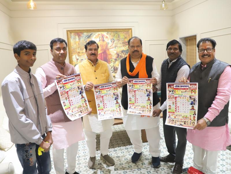 भोपाल। मंगलवार को श्यामला हिल्स स्थित अपने निवास पर सूक्ष्म एवं लघु मध्यम उद्यम मंत्री श्री चेतन काश्यप एवं कौशल विकास एवं रोजगार विभाग के स्वतंत्र प्रभार राज्यमंत्री श्री गौतम टेंटवाल ने भोपाल से प्रकाशित राष्ट्रीय मासिक पत्रिका 'लोक समाधान' के वर्ष 2026 के वार्षिक बहुरंगीय कैलेंडर का विमोचन किया। राजगढ़ जिले के ब्यावरा निवासी भोपाल में कार्यरत पत्रकार एवं पत्रिका के संपादक प्रेम कुशवाह ने मंत्री श्री काश्यप एवं श्री टेंटवाल को पुष्पगुच्छ देकर उनका स्वागत किया। मंत्रियों ने पत्रिका के संपादक श्री कुशवाह को पत्रिका के 21 वर्ष पूर्ण होने एवं कैलेंडर प्रकाशन पर बधाई एवं शुभकामनाएं दीं। कैलेंडर विमोचन के इस अवसर पर राजगढ़ जिले के सारंगपुर नगर पालिका अध्यक्ष पंकज पालीवाल एवं भाजपा के राजगढ़ जिला संयोजक निर्मल जैन, पत्रकार राकेश तिवारी, सारंगपुर के युवा भाजपा नेता राजेश भंडारी, विवेक कुशवाह एवं प्रेस फोटोग्राफर बृज मोहन वर्मा सहित अन्य गणमान्य जन उपस्थित रहे।